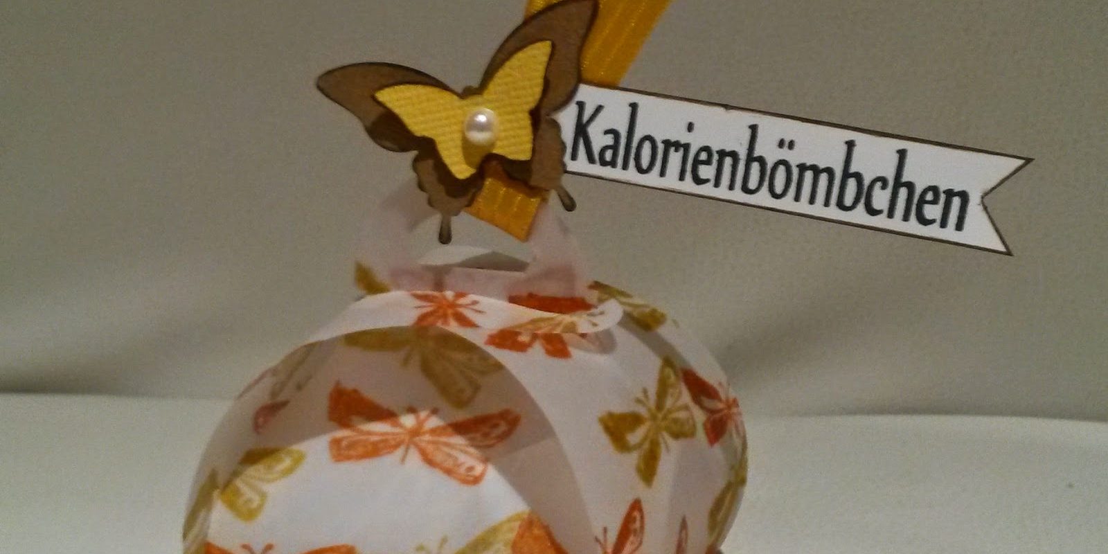 In dieser kleinen Verpackung, die ich mit der Stampin’Up Stanzform „Curvey Keepsake Box“ gewerkelt habe, befinden sich drei Diva Trüffel Pralinen von Lindt. Da passt doch der Textstempel „Kalorienbömbchen“ von efco perfekt dazu, oder?!