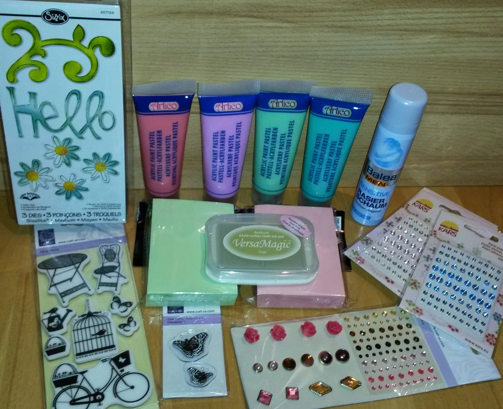 Huhu ihr Lieben, ich war die Tage nochmal im Tedi stöbern, bzw. d.h. in 6 verschiedenen Tedis hier im Umkreis und konnte auch noch einwenig was ergattern *freu* Auch alles wieder je 1 €!!! Allerdings haben unsere Tedis hier scheinbar nichts von den tollen Tim Holtz und Distress Sachen abbekommen… Aber schaut selbst, was ich…