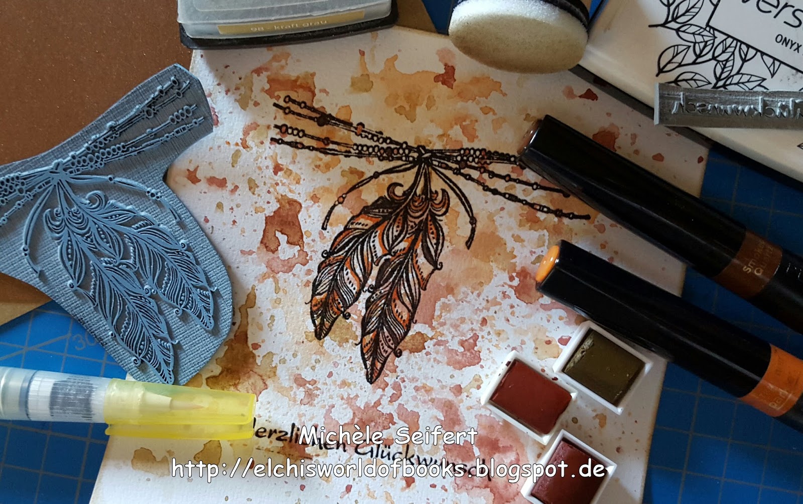 Embossingpulver embosst. Einzelne Stellen des Motivs dann noch