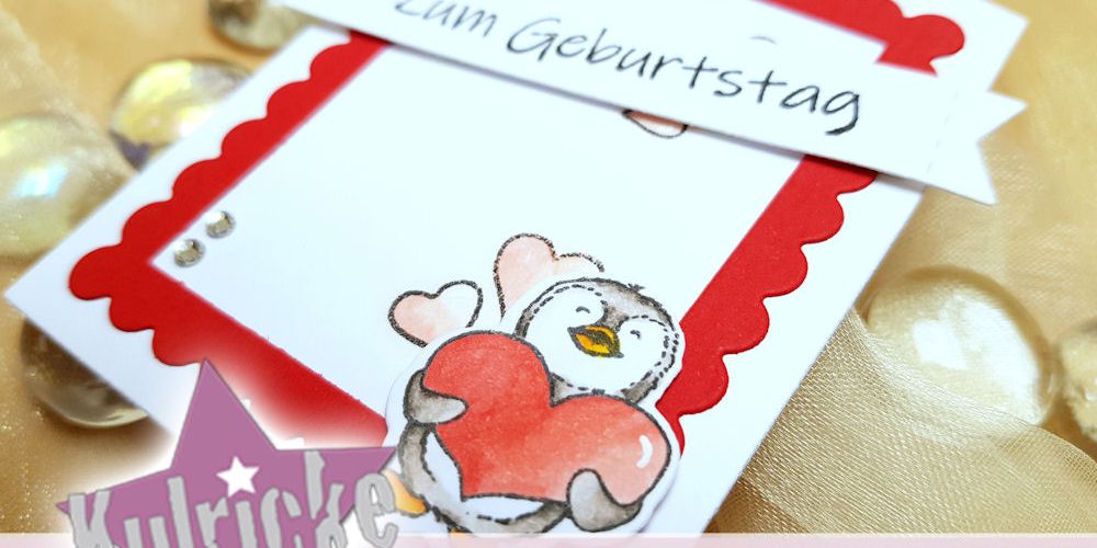 Stempel: Kulricke – Mini Felix mit Herz | Kulricke – Alles Liebe | Stanzen: Kulricke – Mini Felix mit Herz | Die-Namics – Trendy Tag | Die-Namics – Stitched Sentiment Strips | Cardstock: Faltkarten.com – 00 – weiß | Faltkarten.com – 696 – struktur karminrot
