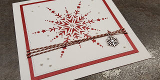 Die Schneeflocke glitzert in rotem Metallic-Papier.
