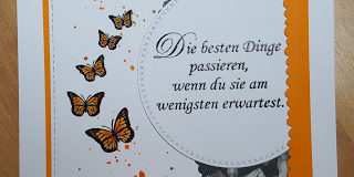 Schmetterlinge und Schrift sind mit Versafine Onyx Black gestempelt