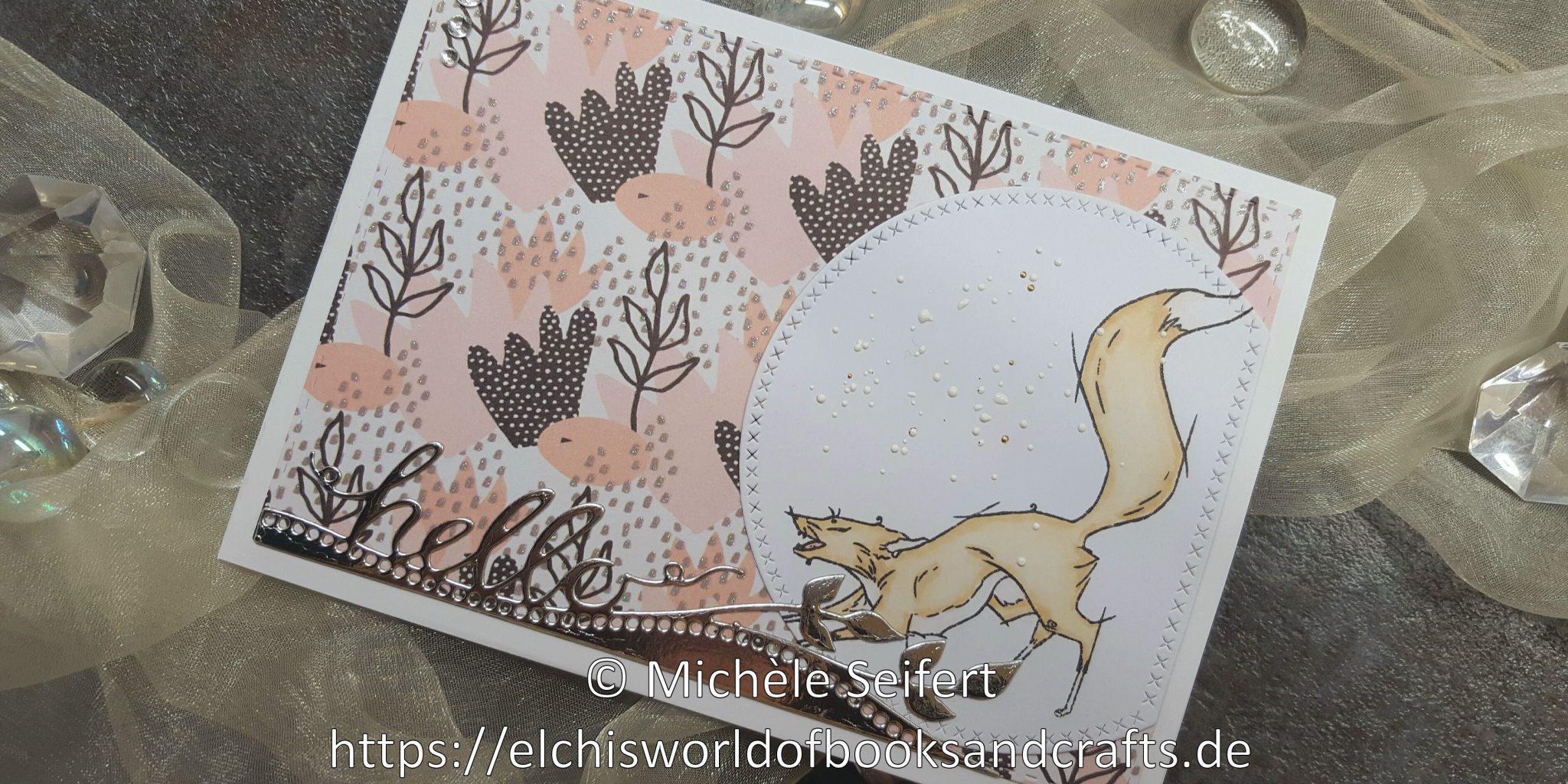Cardstock, Design-Papier und hello-Schriftzug-Stanze stammen dieses Mal alles von Action. Nur der wundervolle Fuchsstempel ist von Scrapadile Stamps.