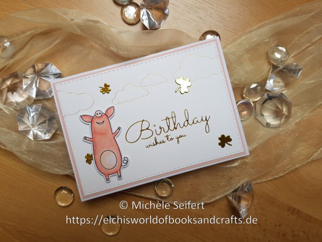 Hallo meine lieben Kärtchenfreunde, heute wie versprochen folgt das zweite Kärtchen, welches bei meinem Versuch mit der GoPress entstanden ist. Dieses Mal habe ich zweierlei Varianten ausprobiert. Der Schriftzug ist wieder ein Hotfoil Stamp von Ultimate Crafts und heißt „Birthday Wishes To You“. Bei den zart goldenen Wölkchen handelt es sich um ganz normale Stanzen…
