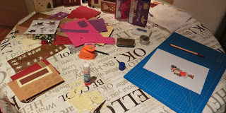 Während ich nur dazu kam an meiner Tilda rumzumalen, hat eine Freundin mehrere Karten geklebt (wobei die Untergründe bereits vorgeschnitten waren und auch ein paar Stanzteilchen…)